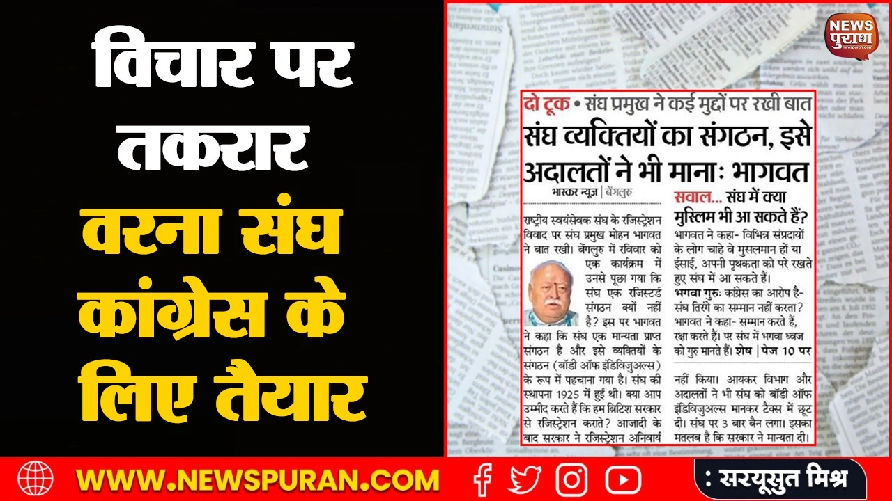 सरसंघचालक कहते हैं कि आरएसएस 1925 में बना था. क्या उस समय ब्रिटिश सरकार में रजिस्ट्रेशन कराया जाता. संघ व्यक्तियों का संगठन है. इसे अदालत ने भी माना है. संघ मान्यता प्राप्त संगठन है, इसे बॉडी ऑफ इंडिविजुअल्स के रूप में स्वीकारा गया है. आजादी के बाद बनी सरकार ने रजिस्ट्रेशन अनिवार्य नहीं किया. सरकार कांग्रेस की थी, जो रजिस्ट्रेशन पर विवाद खड़ा करते हैं. सरसंघचालक कहते हैं, आयकर विभाग और अदालतों ने भी संघ को बॉडी ऑफ इंडिविजुअल मानकर टैक्स से छूट दी.
