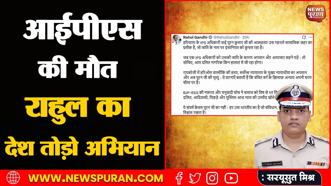 राहुल गांधी जो स्वयं को जनेऊधारी बताते हैं. उनकी सोच के मुताबिक जनेऊधारी मतलब, मनुवादी. इस पैमाने पर वह स्वयं मनुवादी होते हैं. लेकिन राजनीति के लिए वह सबसे बड़े दलितवादी और जातिवादी बन जाते हैं. राहुल गांधी की एक्स पोस्ट कहती है कि, हरियाणा के आईपीएस अधिकारी वाय. पूरन कुमार की आत्महत्या उस गहराते सामाजिक जहर का प्रतीक है जो जाति के नाम पर इंसानियत को कुचल रहा है.