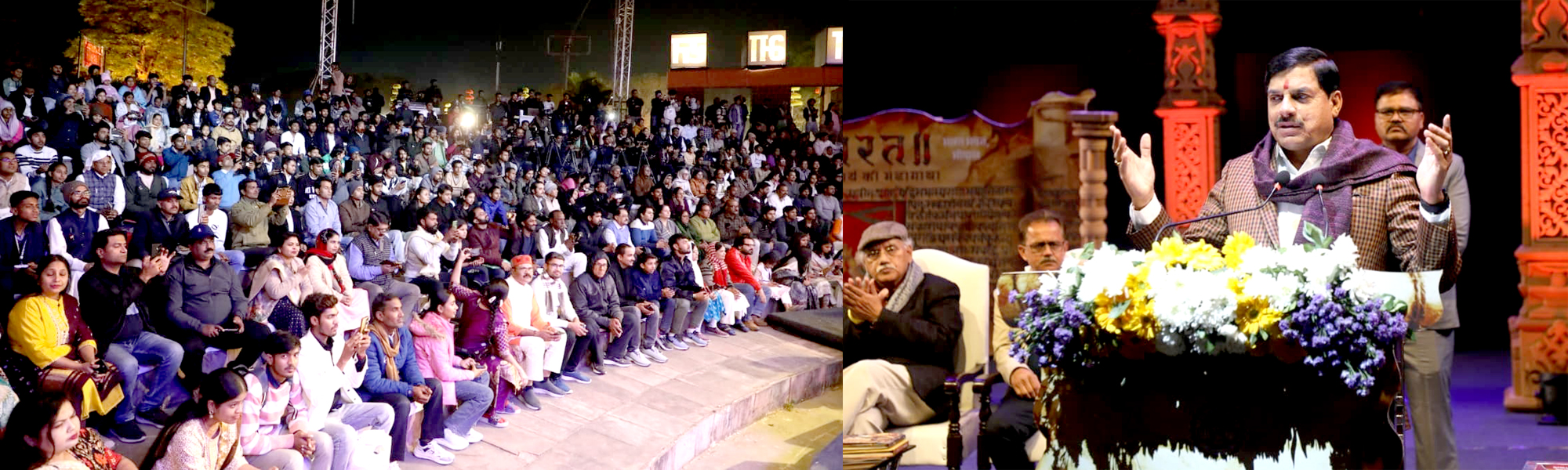 सीएम डॉ. यादव ने कहा कि वैश्विक सभ्यताओं के संघर्ष और औदार्य की महागाथा महाभारत पर केन्द्रित देश का प्रथम और अब तक के सबसे वृहद आयोजन के साक्षी होने का यह अवसर है। इस महाभारत समागम में आकर ऐसा प्रतीत हो रहा है, जैसे महाभारत काल में पहुंचकर घटनाओं को देख रहे हों। कलाकारों ने अपने पात्रों को जीते हुए पूर्व जन्म से कथा का तानाबाना बुना है। मध्यप्रदेश के स्थापना दिवस जैसे विशेष अवसर पर भी ऐसी प्रस्तुति की जाएगी। महाभारत समागन में इंडोनेशिया सहित अन्य राष्ट्रों के नाट्य समूह आमंत्रित किए गए हैं। वीर भारत न्यास का यह महत्वपूर्ण वैचारिक और सांस्कृतिक उपक्रम है, जो आने वाली पीढ़ियों को भी नई ऊर्जा देगा।