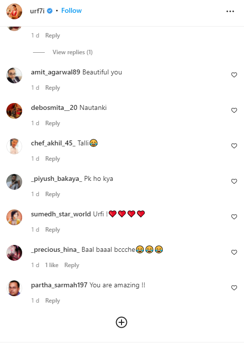 उर्फी का ये वीडियो काफी फनी है. इस वीडियो को शेयर करते हुए उर्फी जावेद ने लिखा, ''गिरते गिरते बचने बालो कों क्या कहेंगे ? कोई आइडिया ? 'लेकिन अब इस वीडियो पर फैन्स का कमेंट लोगों का ध्यान खींच रहा है। यहां लोग उन्हें 'नोटंकी' कह रहे हैं तो कुछ उन्हें 'पीके' कह रहे है.